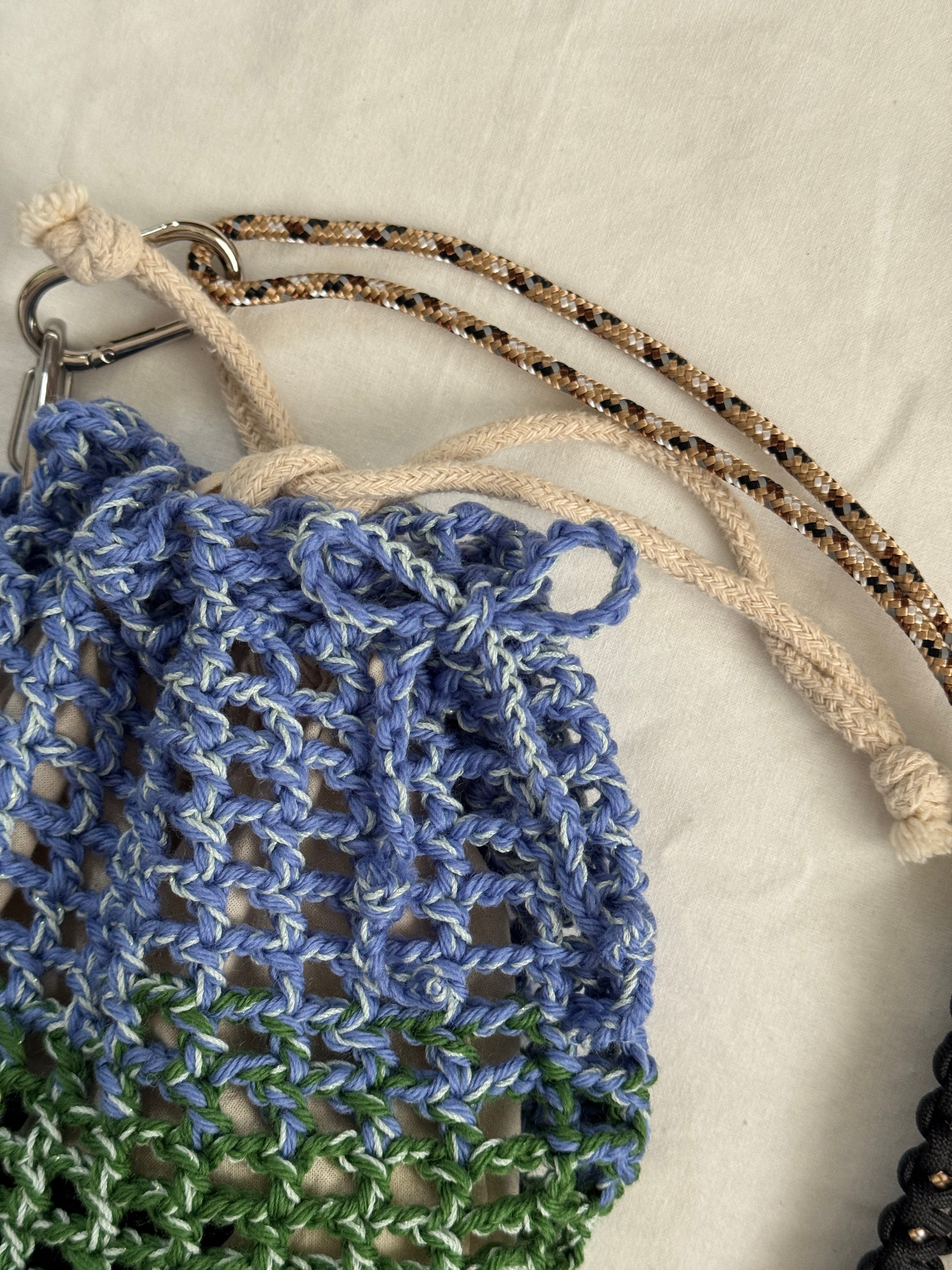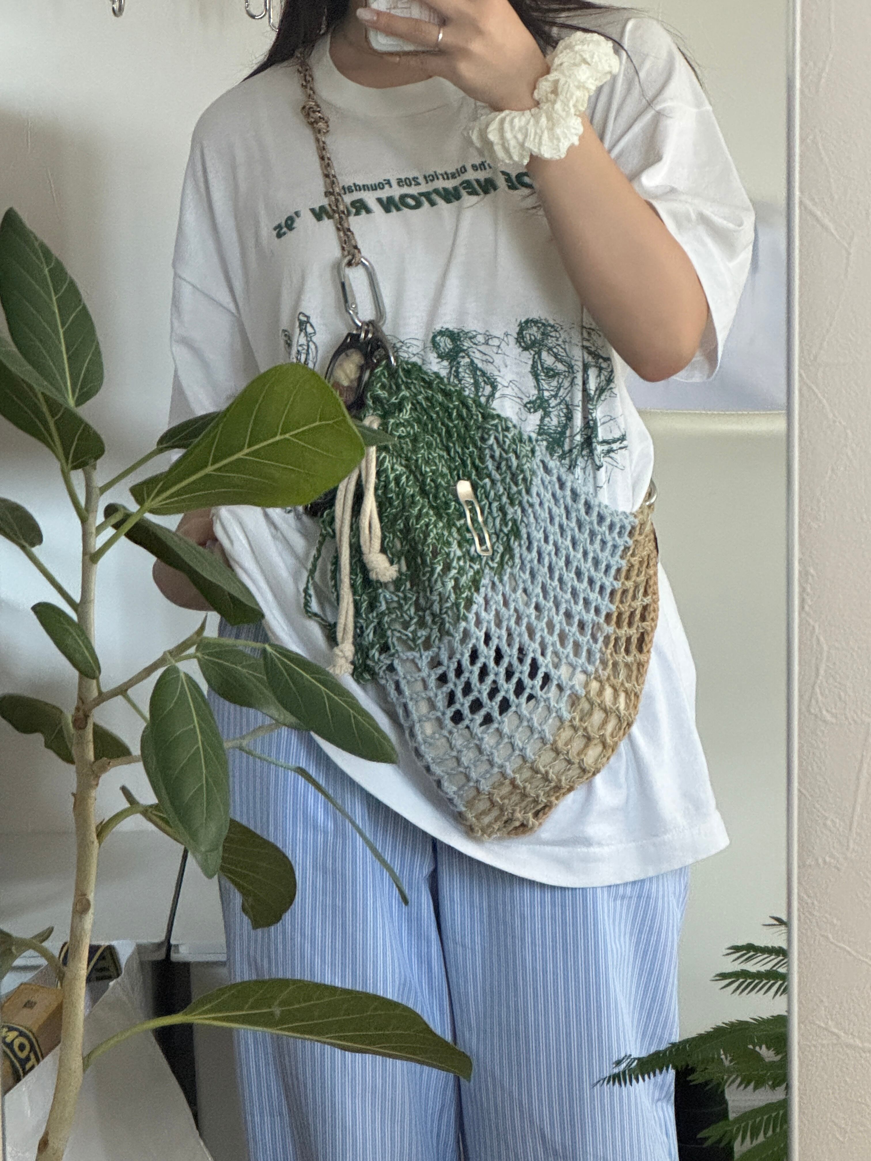 ✴︎ handmade mesh knit bag _ shimmer lake (beige × black)