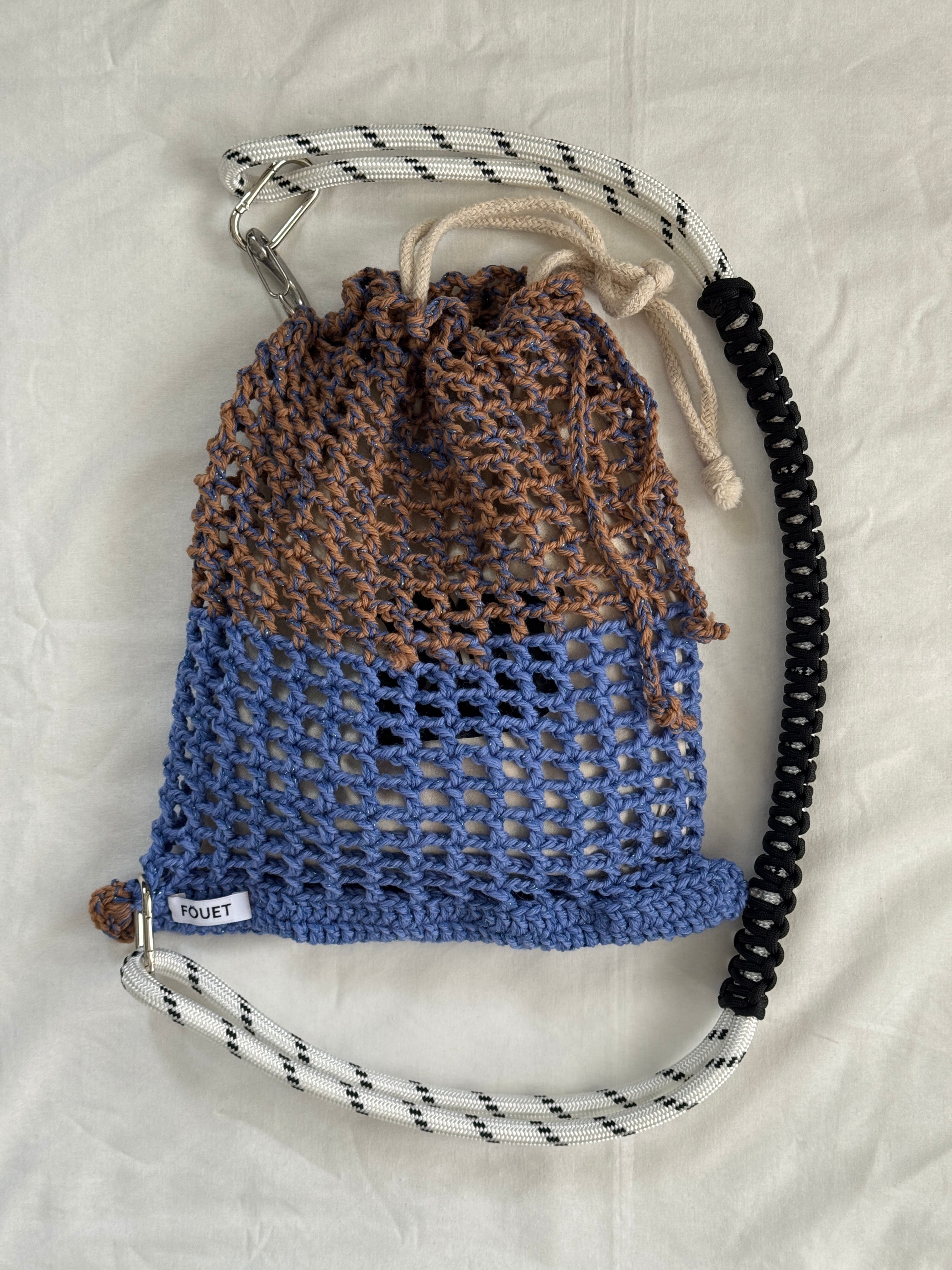 ✴︎ handmade mesh knit bag _ blueberry brown(white × black)