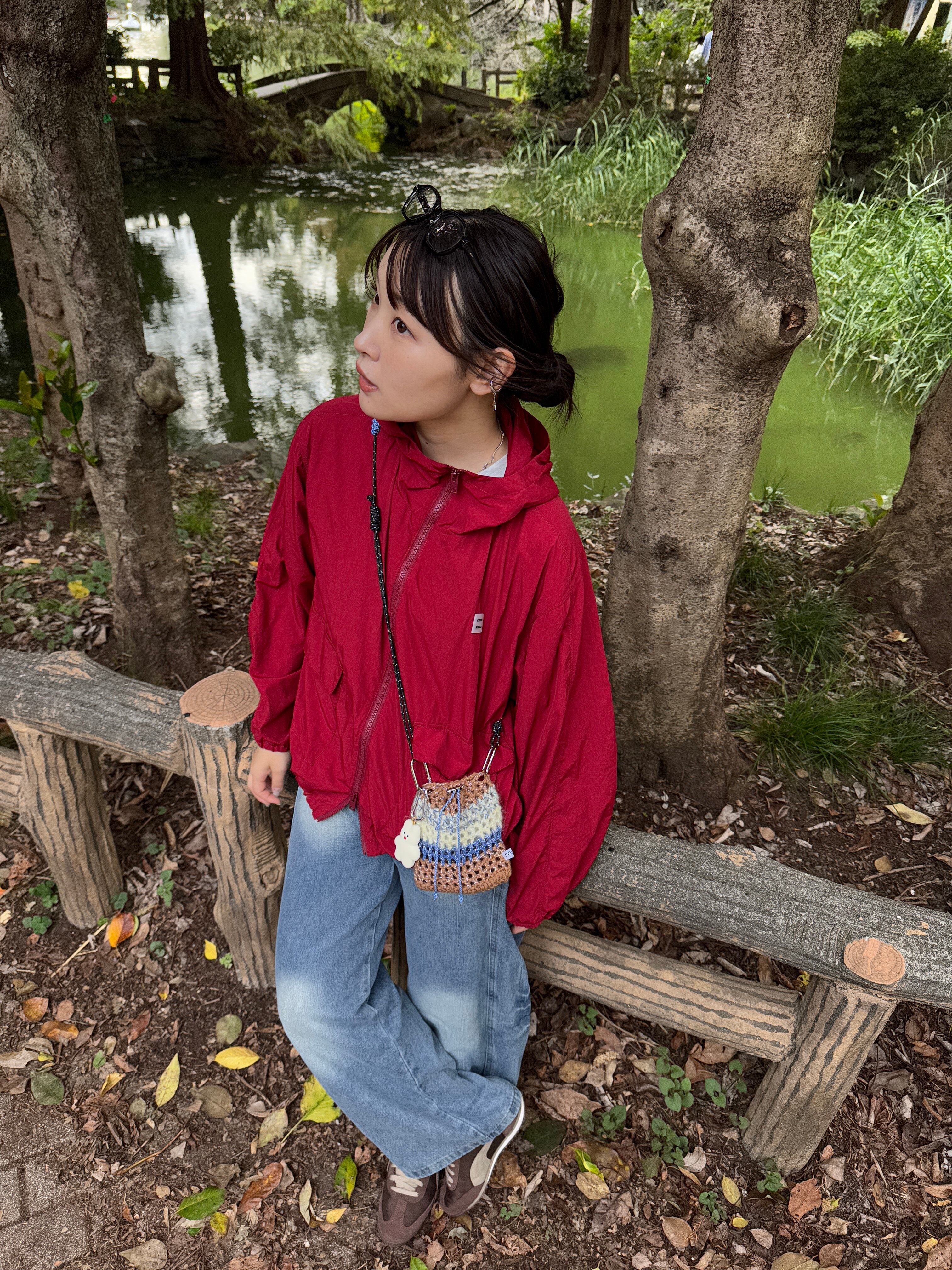 ・ロープショルダーにはパラコード を使用。ニットバッグを取り外して、キーショルダーとして使用するなど、使い方は様々。