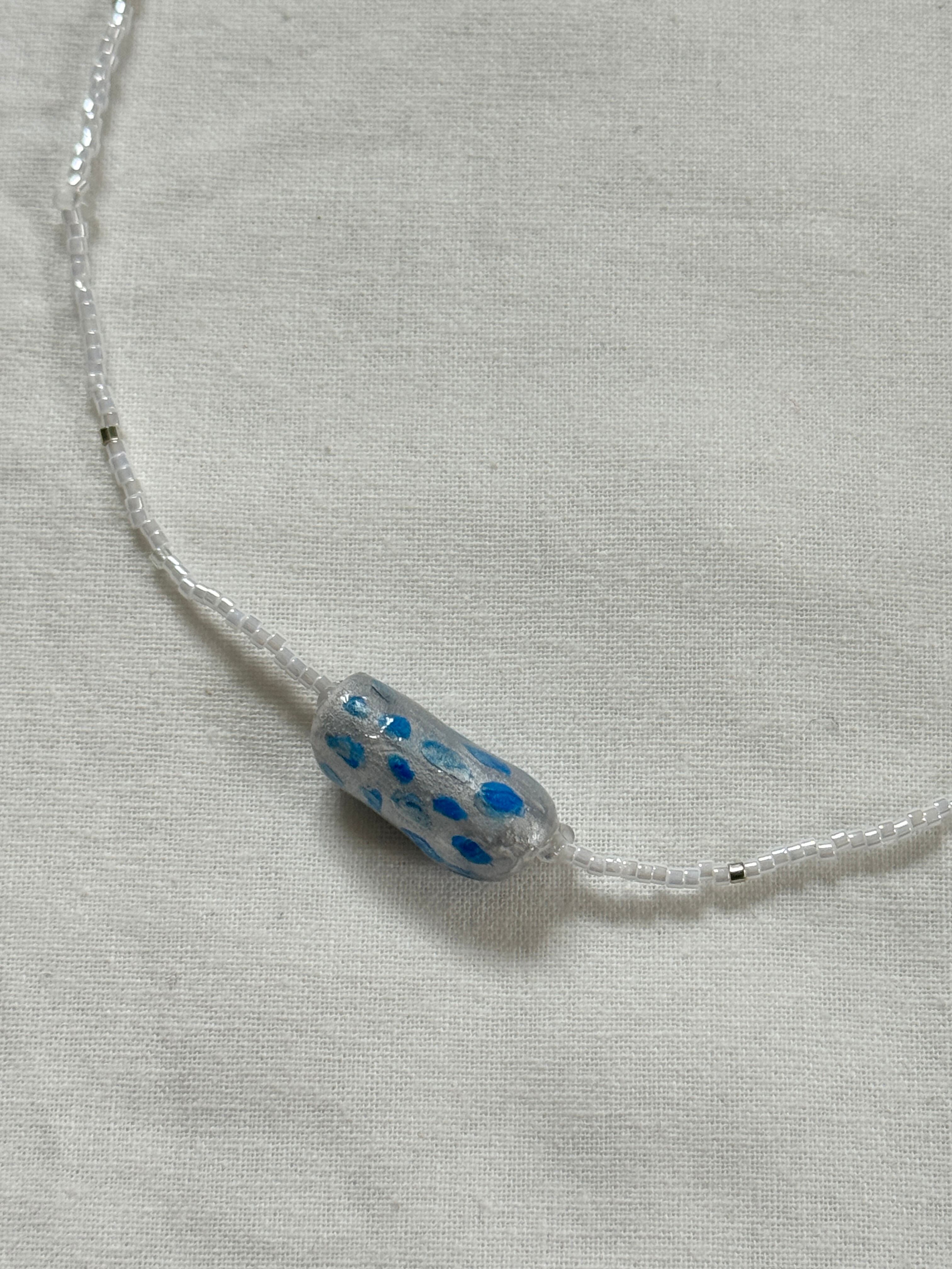 ・ハンドメイドオリジナルパーツが付いたビーズネックレス。