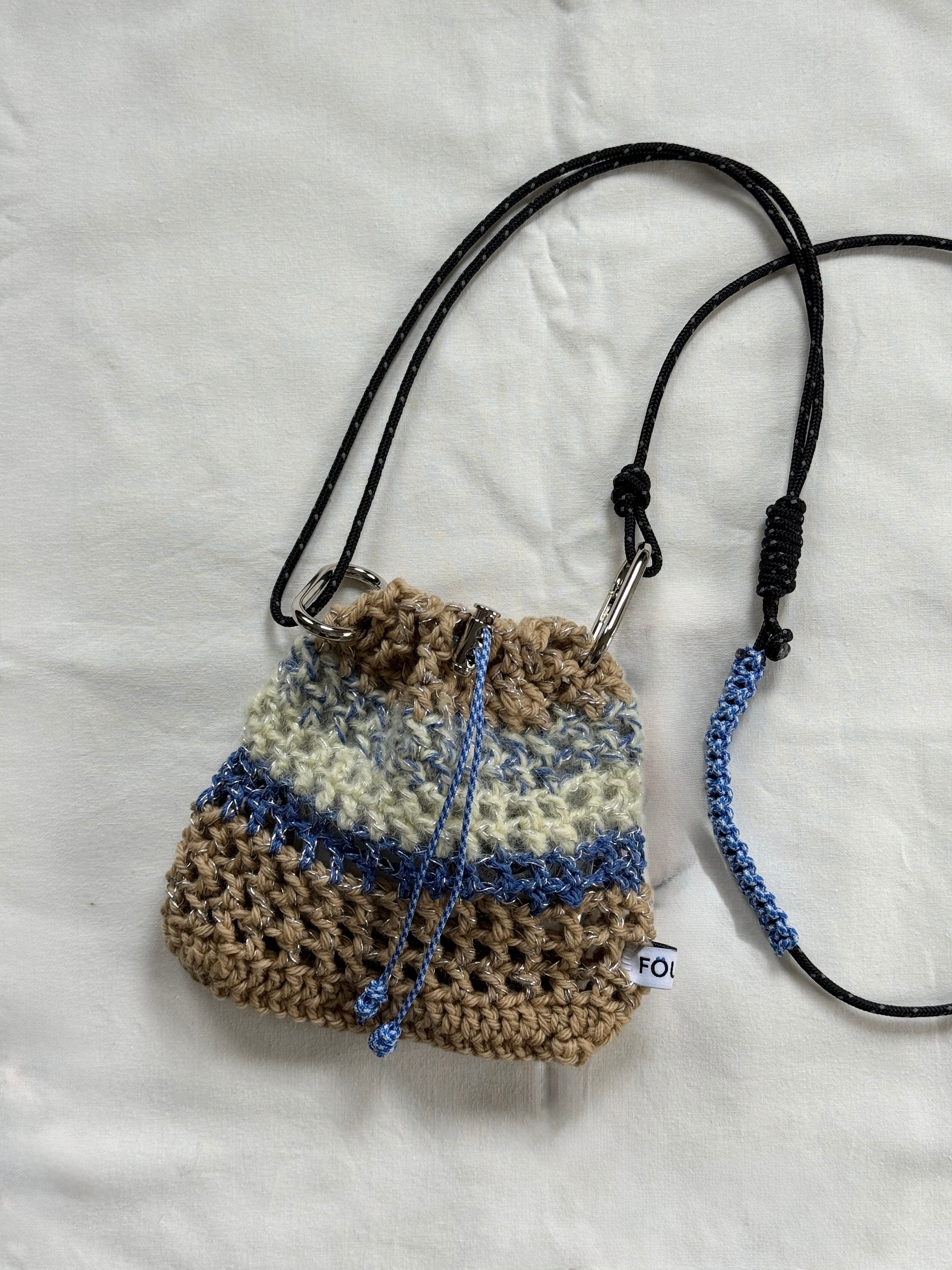 ・柔らかいウールや、和紙の入った繊維のラメ糸など、様々な素材の糸を使用したラメポシェット。