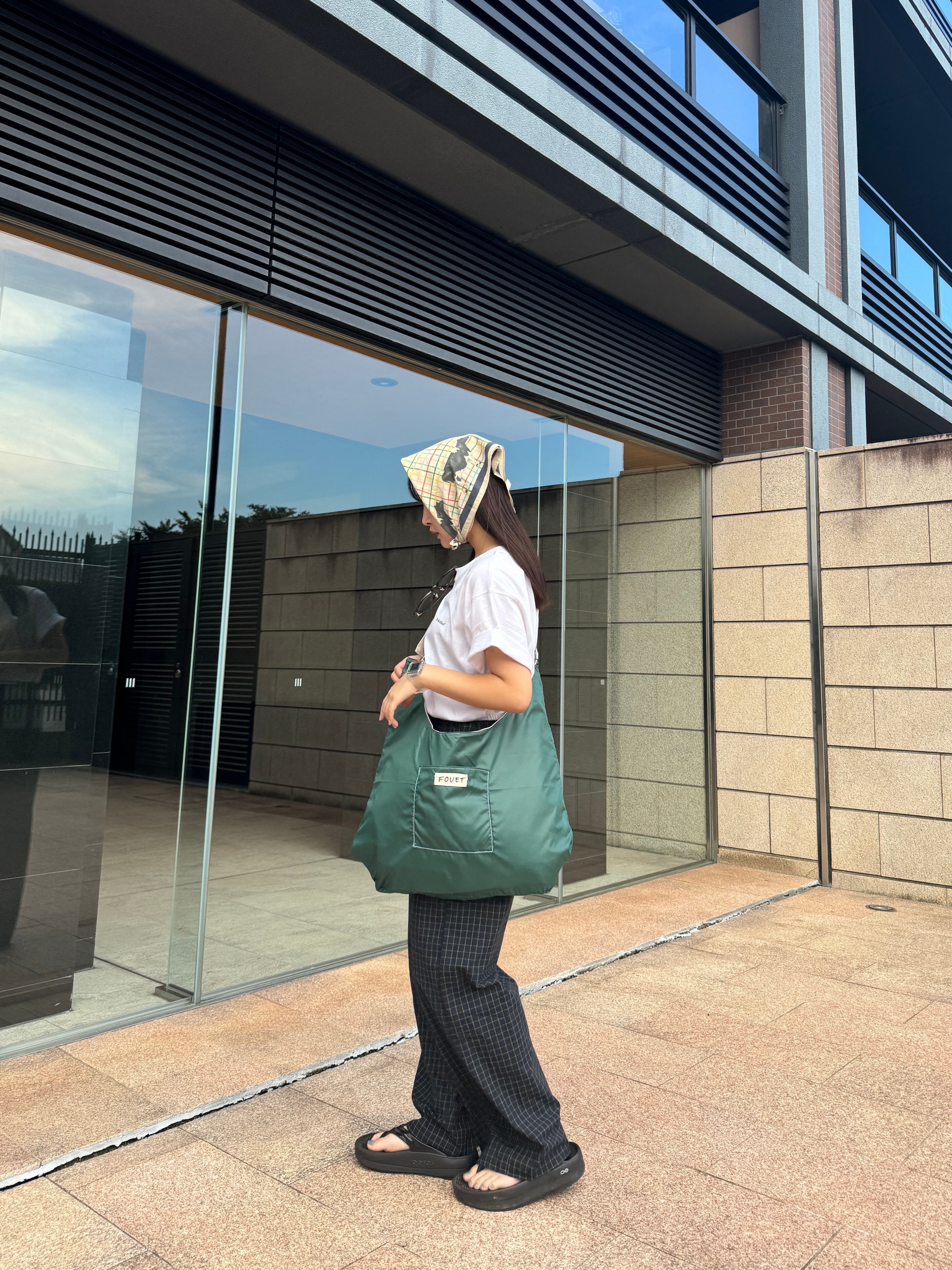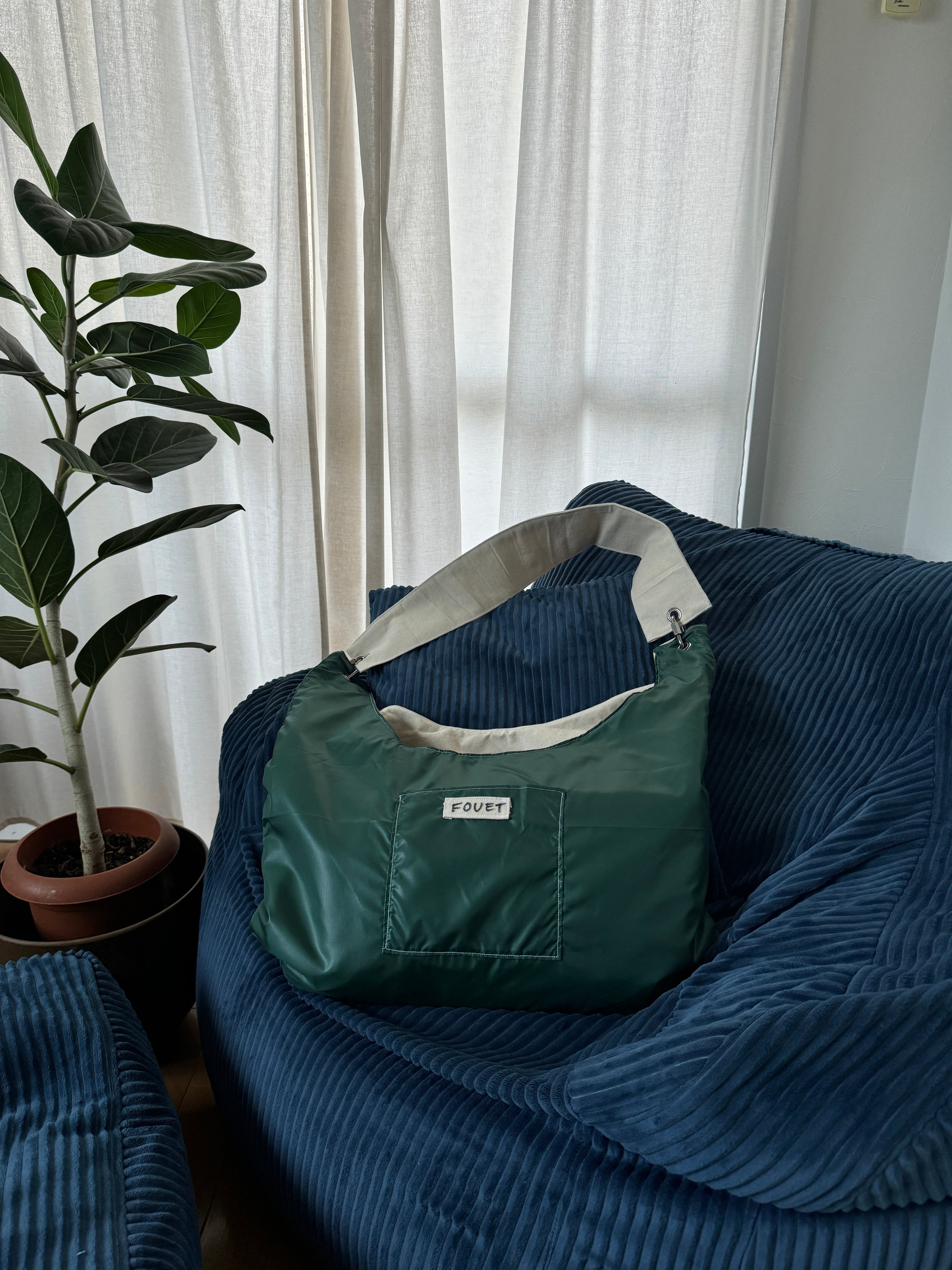 リップストップナイロンの方にはポケット+FOUETの手書きタグがついています。