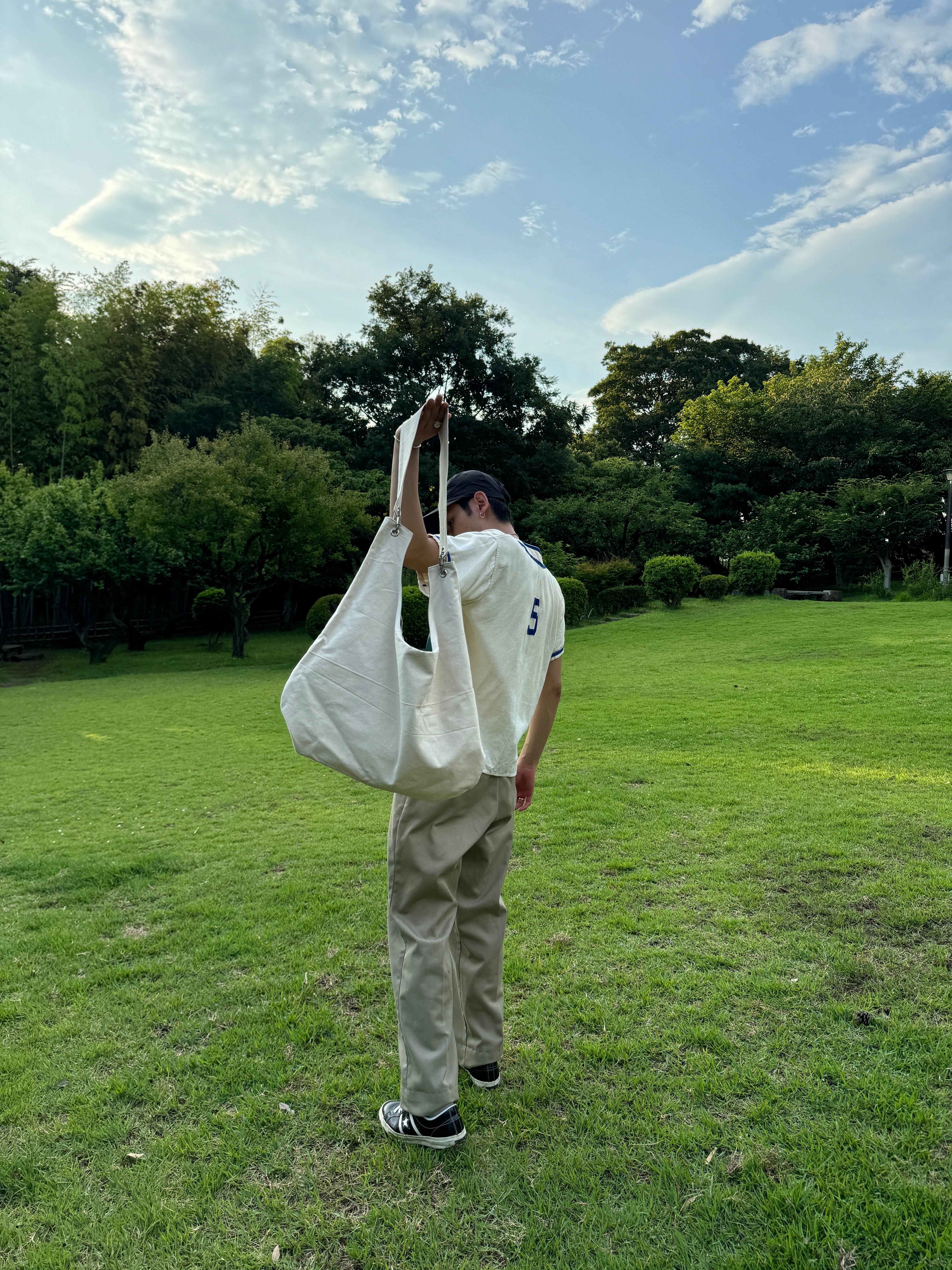 マチありで大容量、キャンバス地で耐久性があり、様々なシーンでご利用頂けます。